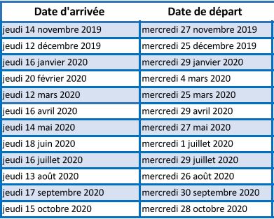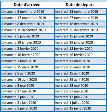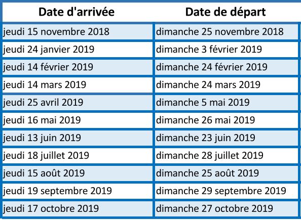 Le transfert départ du dernier jour ont lieu est regroupé et à lieu à 10.00, En dehors de cet horaire un supplément de +15 € est appliqué