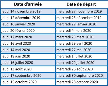Les transferts arrivée sont prévus de 07.00 à 17.00. En dehors de ces horaires, un supplément de 15 €/personne ( 30€ si personne seule) est applicable