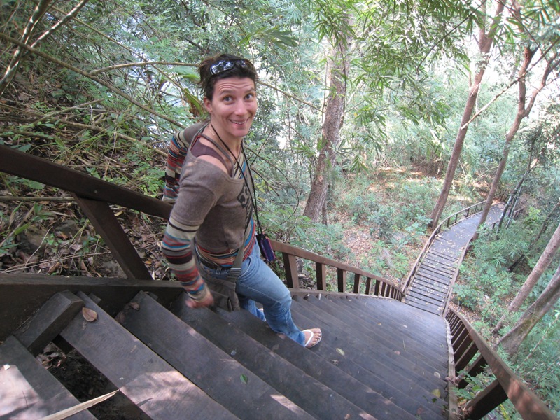 Si vous êtes en condition physique continuez la piste et passez par l'autre versant. Descendez l'escalier... Attention à la remontée. A gauche Carine qui descend avec le sourire et à droite votre GM Khuon Tour qui remonte avec un sourire crispé...