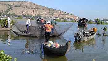 De nombreux villages sur les berges et beaucoup de pécheurs sur le lac