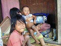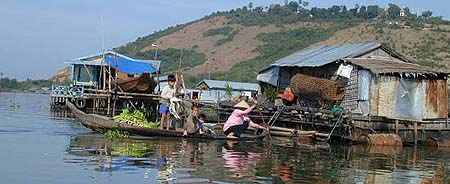 Le lac tonlé sap une régions du Cambodge pour votre circuit et photos au Cambodge, un circuit passe par Le lac tonlé sap un tour sur le lac pour voir le village flottant LE LAC TONLE SAP : régions du Cambodge pour votre circuit au Cambodge. Des circuits passent par LE LAC TONLE SAP . Circuit à Angkor passe par LE LAC TONLE SAP . Voir les circuits Angkor Wat,Bayon, Ta keo, Ta Prohm, Banteay Srei, Preah Khan, Tonle Sap, Siem Reap, Phnom Penh, Angkor, Sihanoukville, Siem Reap, vietnam. LE LAC TONLE SAPafficher le plan du Cambodge dans une autre fenêtre La route du lac / Ballade sur le lac / Bateaux pour Phnom Phen/ Réserve ornithologique Pour ceux qui aiment une découverte en profondeur d'un pays, la route du lac, ainsi qu'une ballade en bateau à la rencontre des villages de pèche flottants, sont des visites incontournables au même titre que les temples. C'est un des endroits ou l'on se trouve au plus prés de la vie cambodgienne et au contact de leur réalité de tous les jours. Ici, toute la vie se déroule autour de l'eau. Très poissonneux, paradis des pécheurs, il abrite des villages lacustres depuis la nuit des temps. Une grande partie des marchandises arrivent par le lac et c'est le poumon de Siem Reap, car les grandes routes pour rejoindre les autres villes sont en trop mauvais état. C'est le plus grand lac du Cambodge et sa "mère nourricière". De très nombreuse photos sont agrandissables en cliquant dessus La route du LacUne route d'une dizaine de km (en mauvais état par endroits) qui serpente entre la rivière et le lac