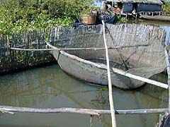 Prés de chaque maison bateau, un grand vivier entouré de bambous ou sont conservé les poissons