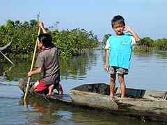 Ballade en bateau dans les villages de pèche flottantsUne ballade en bateau à moteur sur le lac au départ de Siem Reap, pour se rendre dans les villages flottants qui se déplacent au gré du courant. Ce sont souvent des villages vietnamiens ou tout le monde pratique la pèche. Ces bateaux de promenade, (photo de gauche), comportent des sièges et un abri du soleil.