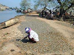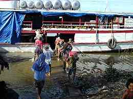 déchargement à dos d'homme des cargaisons des gros bateaux