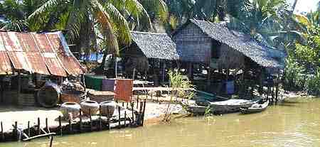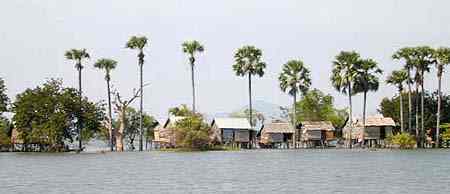De nombreuses maisons à toiture de paille ou de tôles, montées sur pilotis ou sur flotteurs