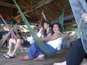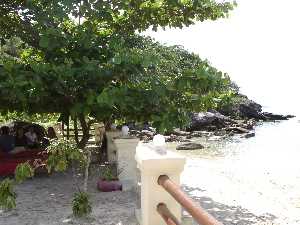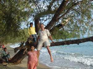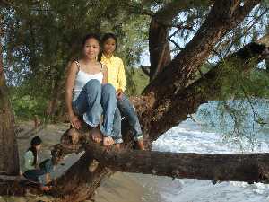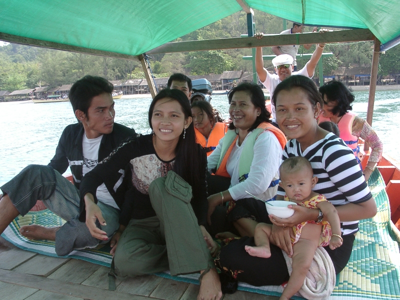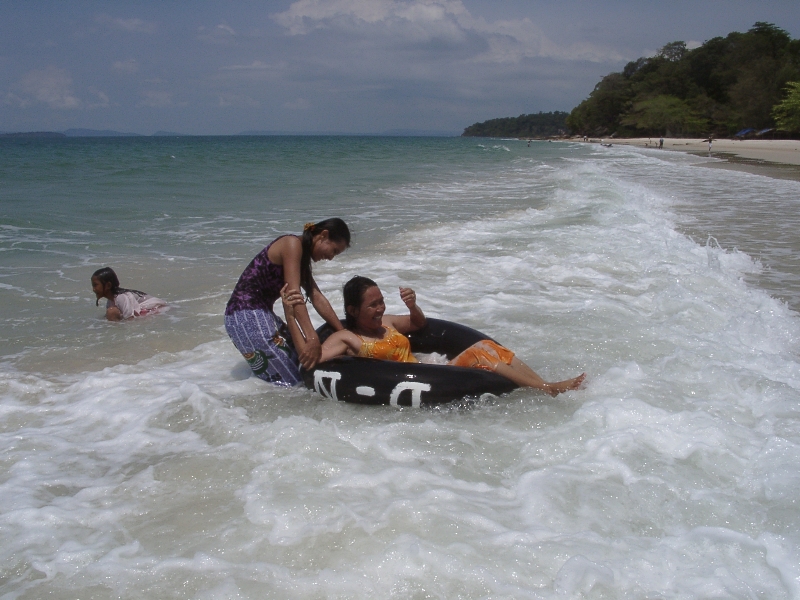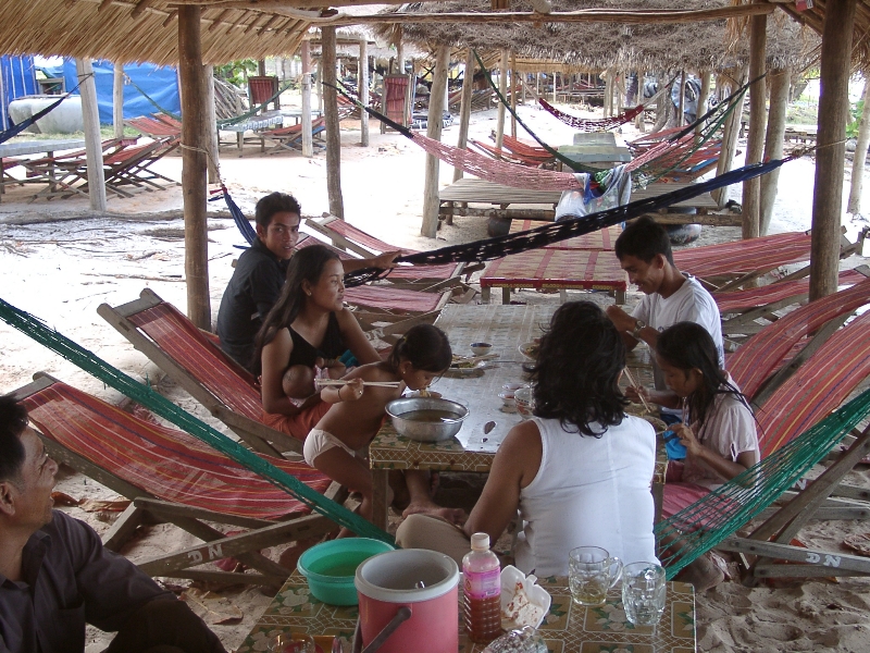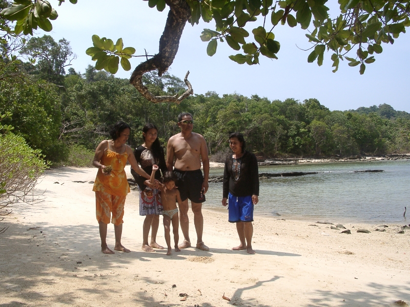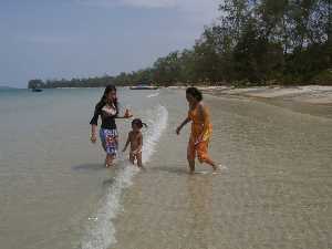 Sur les îles : pas de marchand de coca ou autre, Ici Visal et sa maman. Au Cambodge on se baigne tout habillé!! Pas de bikinis sauf pour les touristes.