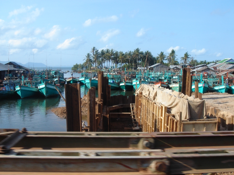 Si les conditions routière le permette retour via Kampot, visite d'un village de pêcheur, pique nique au bord d'une rivière, baignade. La route du littoral est en pleine reconstruction, à ce jour certain pont ne sont pas encore reconstruits.