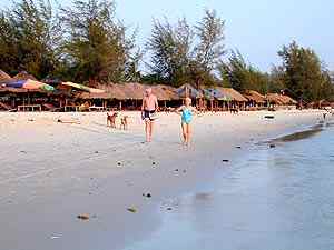 Des plages ombragées équipées pour le repos, la détente et le farniente. Ces plages entrent doucement dans l'océan aux eaux bleues transparentes, non polluées de détritus ou autres déchets. Des Chaises longues et parasols (non payants), de nombreux abris en paillottes et des petits restaurants qui servent du poisson frais, complètent ces plages peu connues du grand tourisme et uniquement occupées les week-end par des habitants de Phnom Penh. Plusieurs hôtels de toute catégories vous fourniront un hébergement de qualité. Un endroit idéal pour la détente et la natation sans danger.
